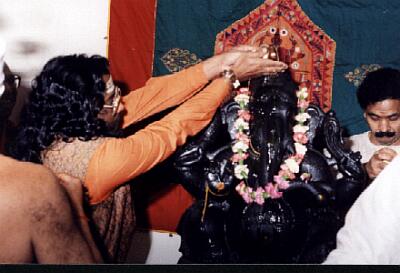 Abhishekam during the Shri Ganesh Installation Ceremony